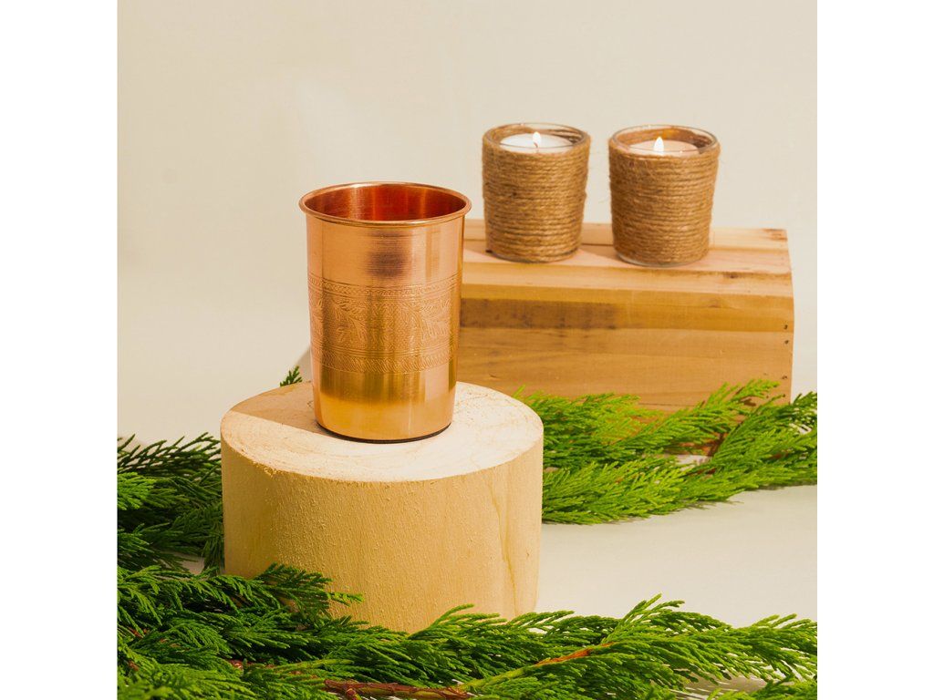 Čistý měděný hrnek s květinovým vzorem na okraji – 300 ml