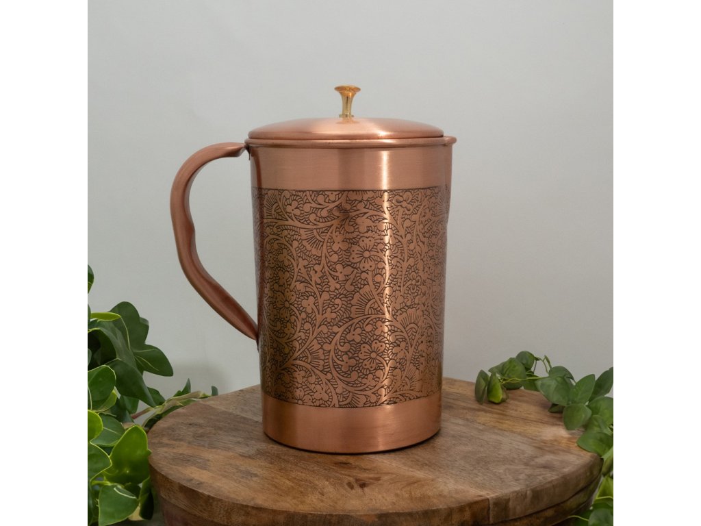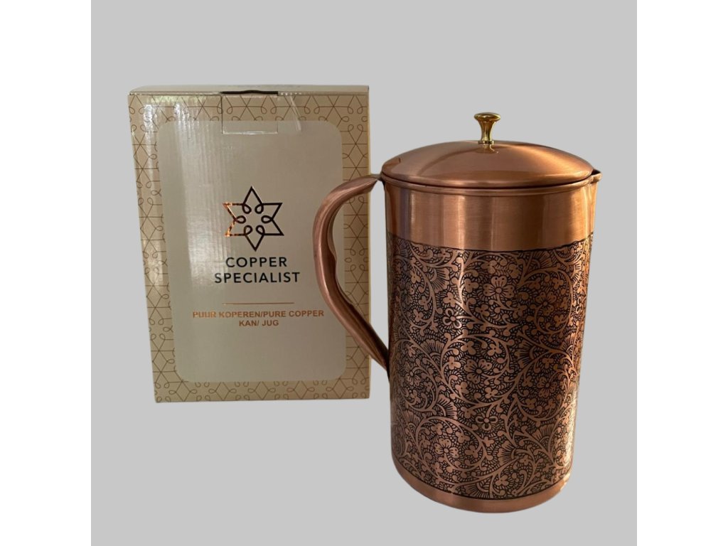 Čistý měděný kovaný džbán s květinovým vzorem a víčkem ± 2 litry, 1ks