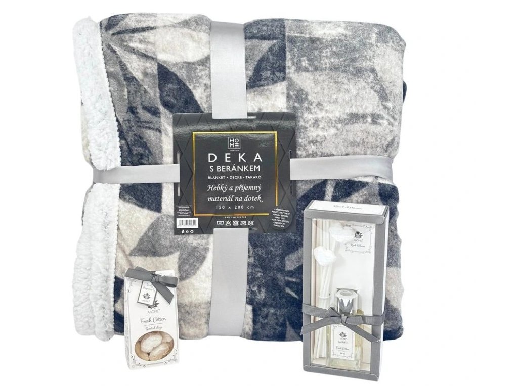 HOME ELEMENTS Vánoční set deka květiny, difuzér a vonné jíly 1ks