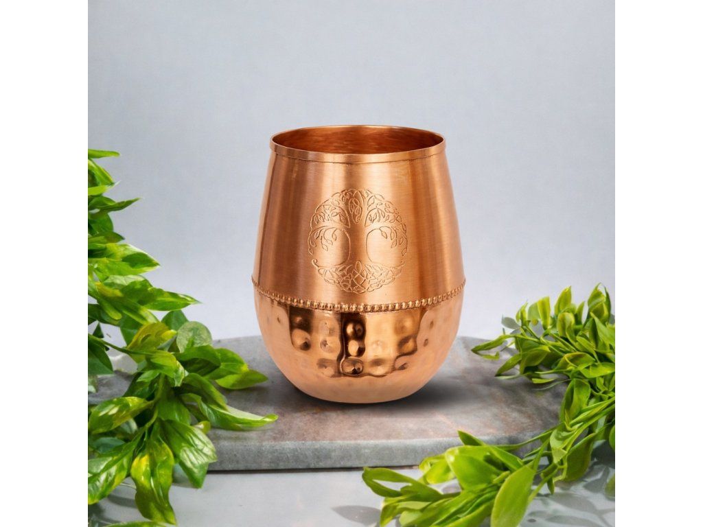 Ájurvéda již od starověku obhajuje výhody pití vody z měděných nádob na pití. Ajurvéda uvádí, že udržování vody v měděné láhvi nebo sklenici po dobu 8-10 hodin má vyrovnávací účinek na tři bioenergie (dóše), které cirkulují v lidském těle (Vata: element vzduchu, Pitta: element ohně a Kapha: element vody). Kromě toho se voda v měděných nádobách na pití stává přirozeně zásaditou, což pomáhá udržovat vyváženou hladinu pH. Přečtěte si více zde.